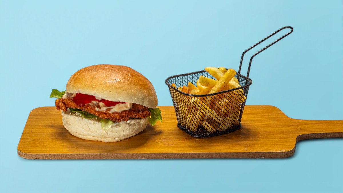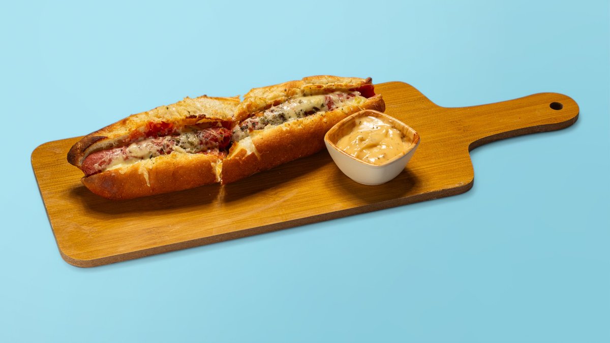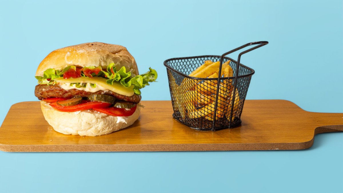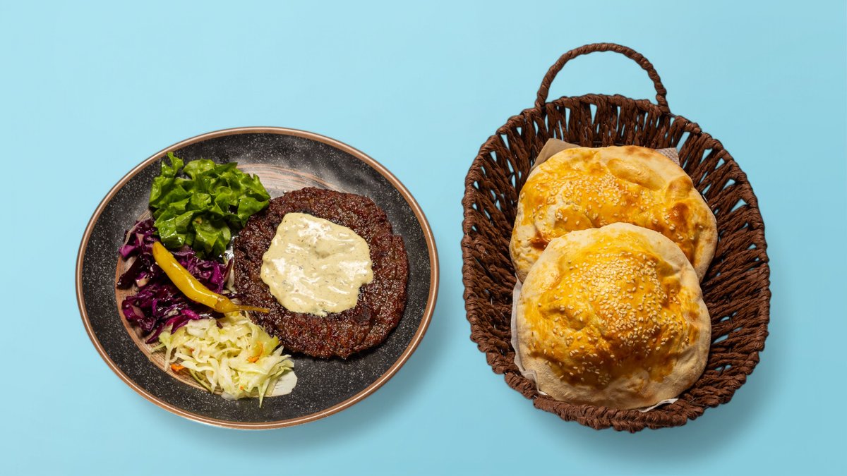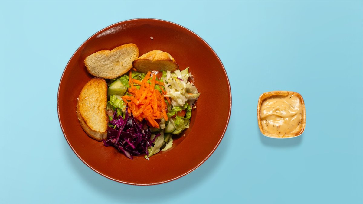 Bukë shtëpie, pleskavicë viçi, sallatë, sos, kaçkavall amerikan
