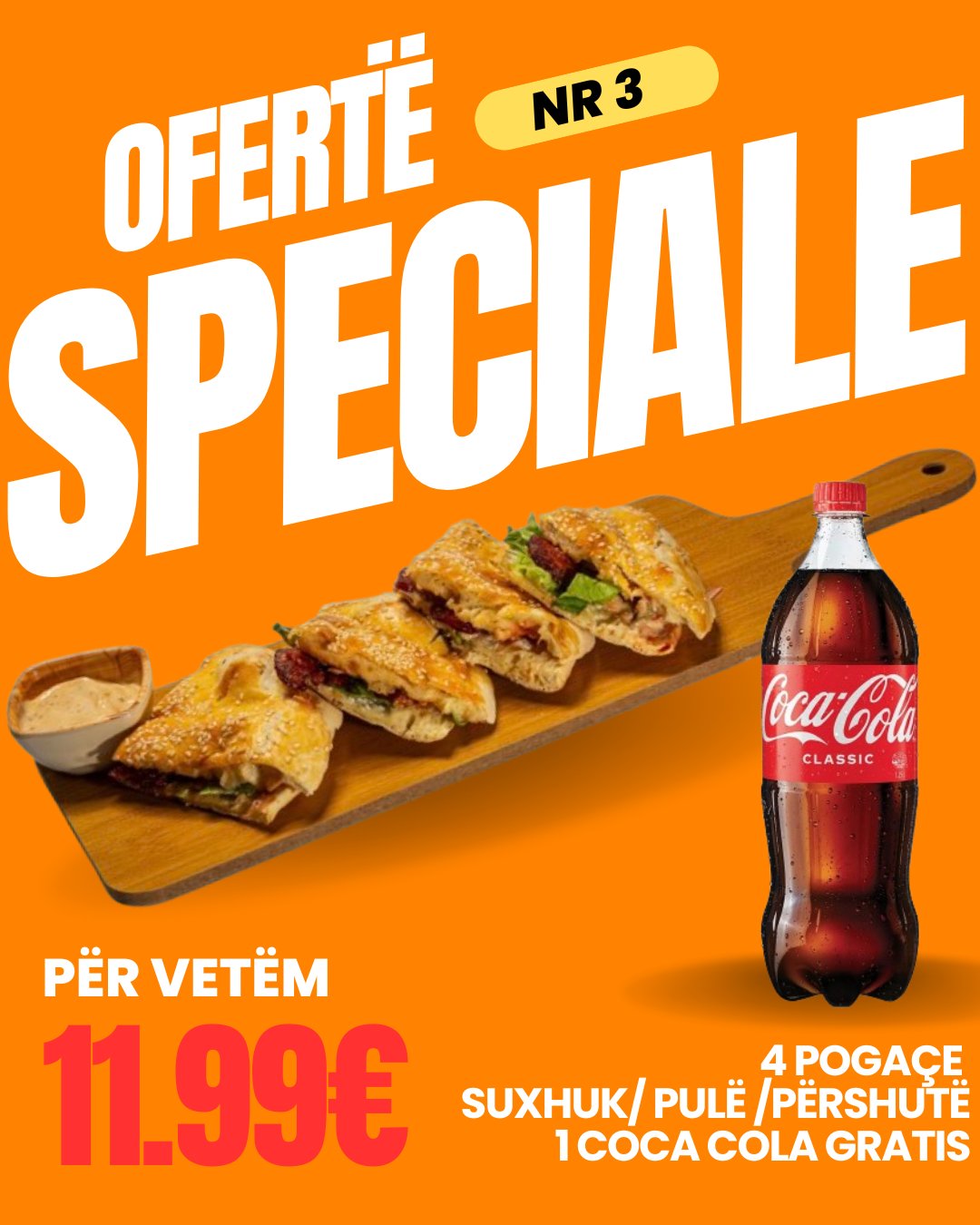 4 Pogaçe (suxhuk / pulë / përshutë) + 1.25L Coca-Cola FALAS