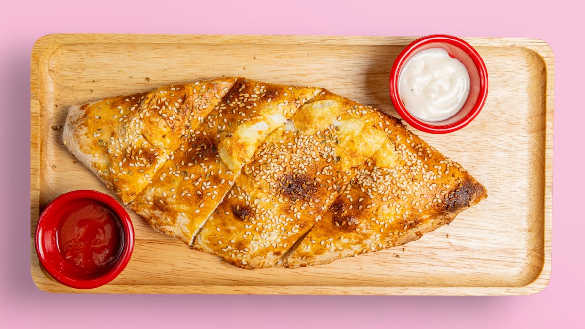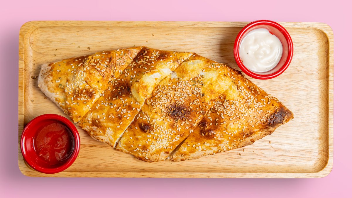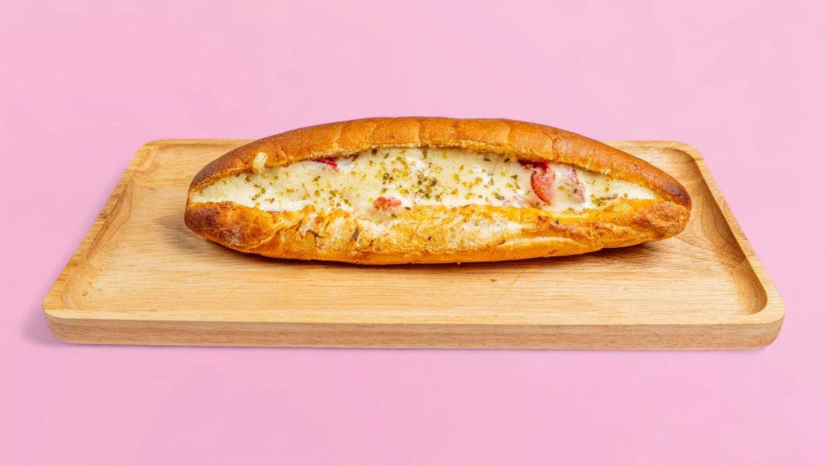 Sos domatesh, djathë, mish pule, sos bbq, origano
