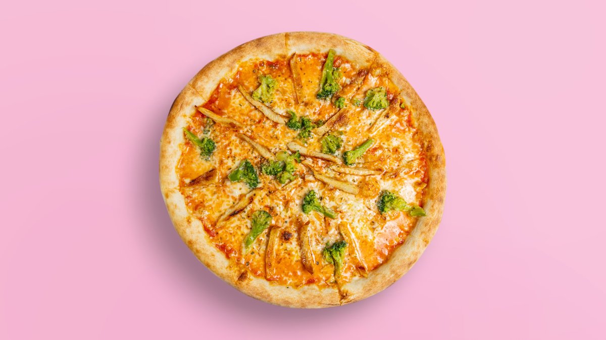 Sos domatesh, djathë, mish pule , brokoli ,vaj hudre, origano