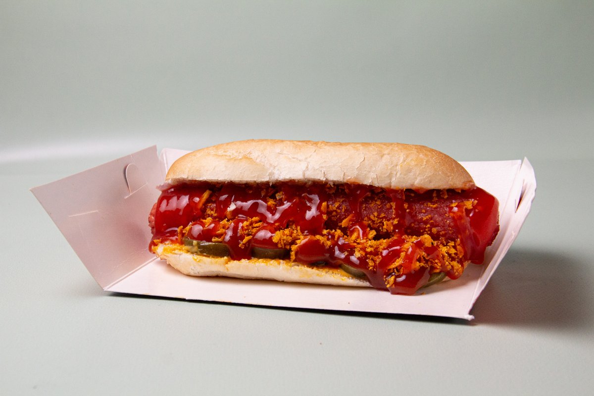 Melted cheese, onion jam, tomato salsa, jalapeno, crushed taco, ketchup