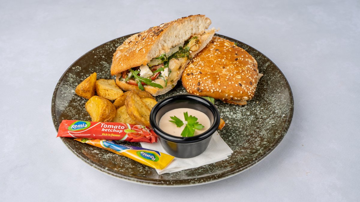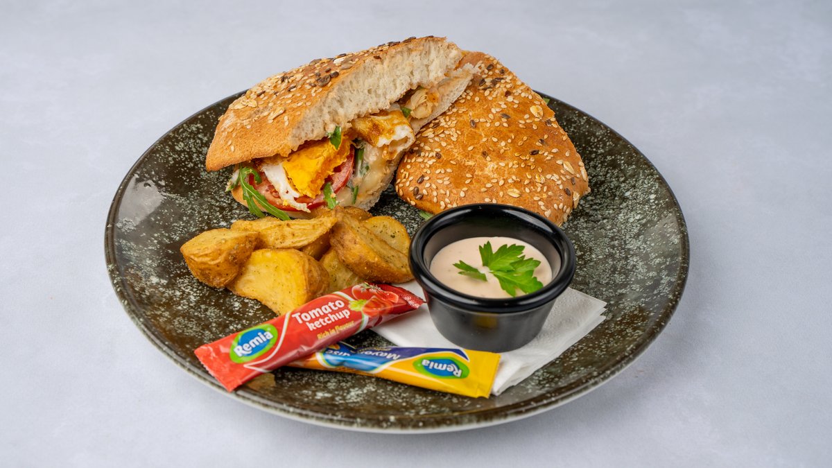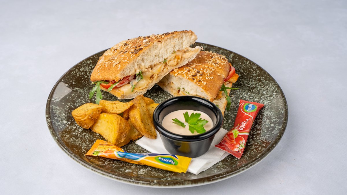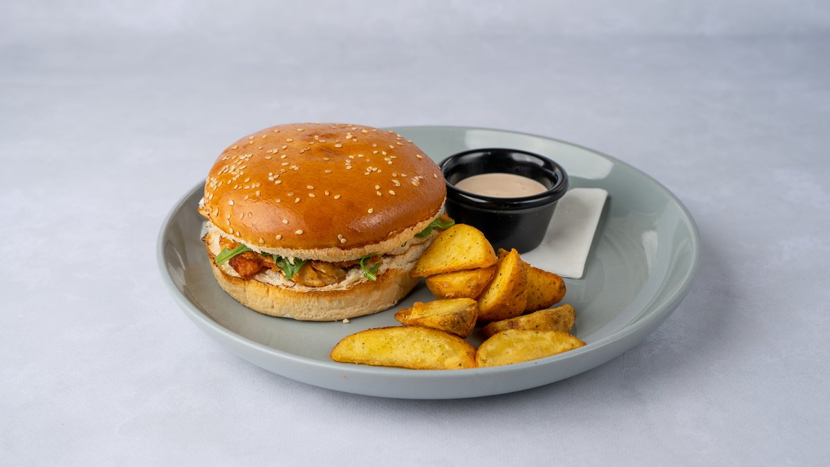 Pleskavicë, vezë, salcë burgeri, fleger cheesteri, patate, sos