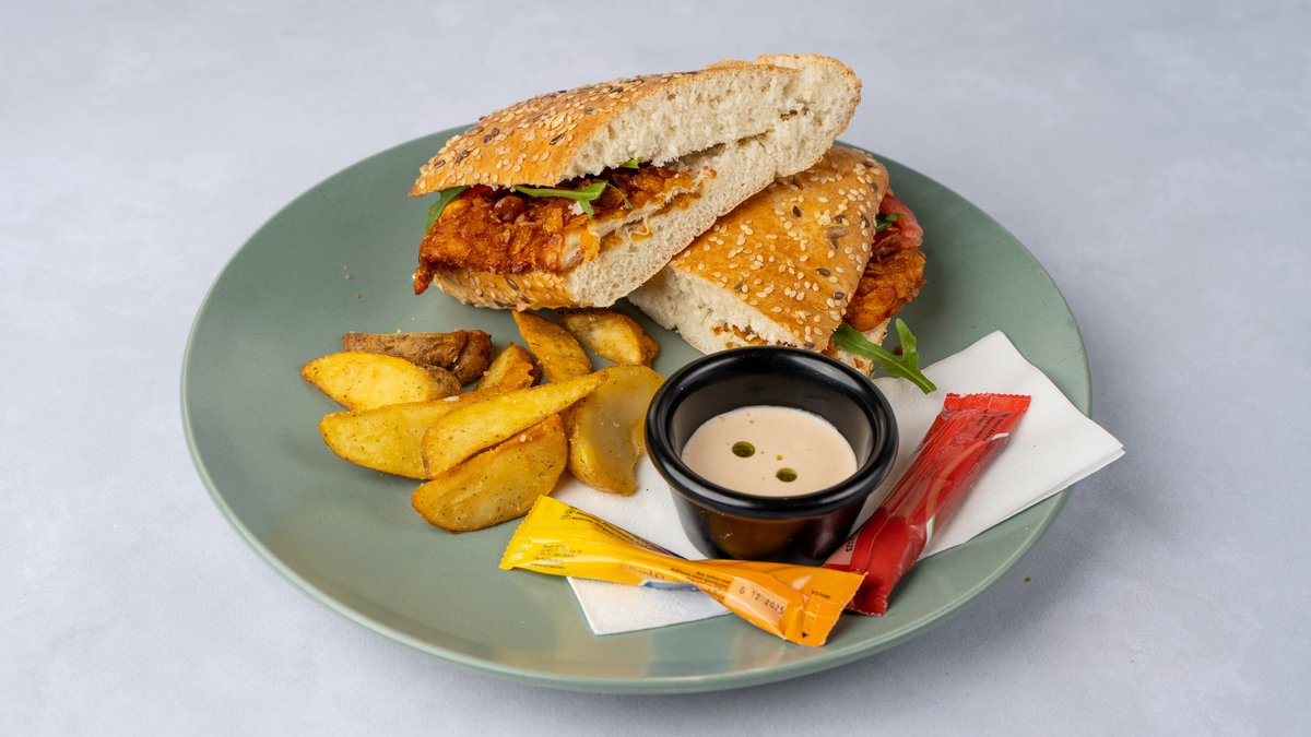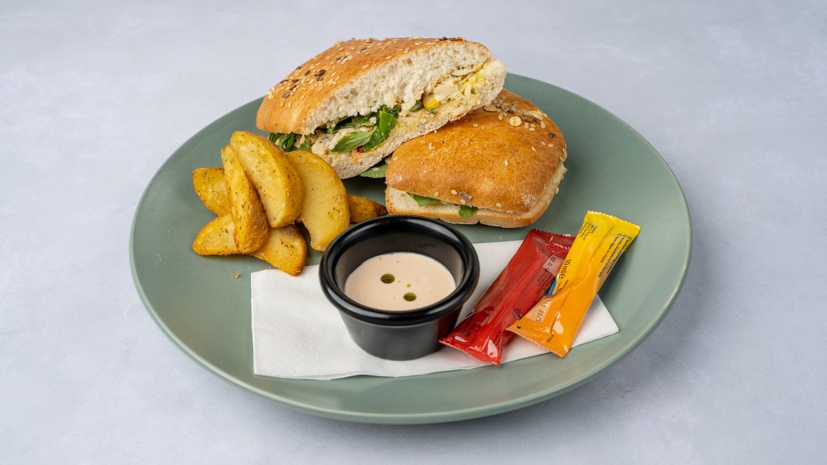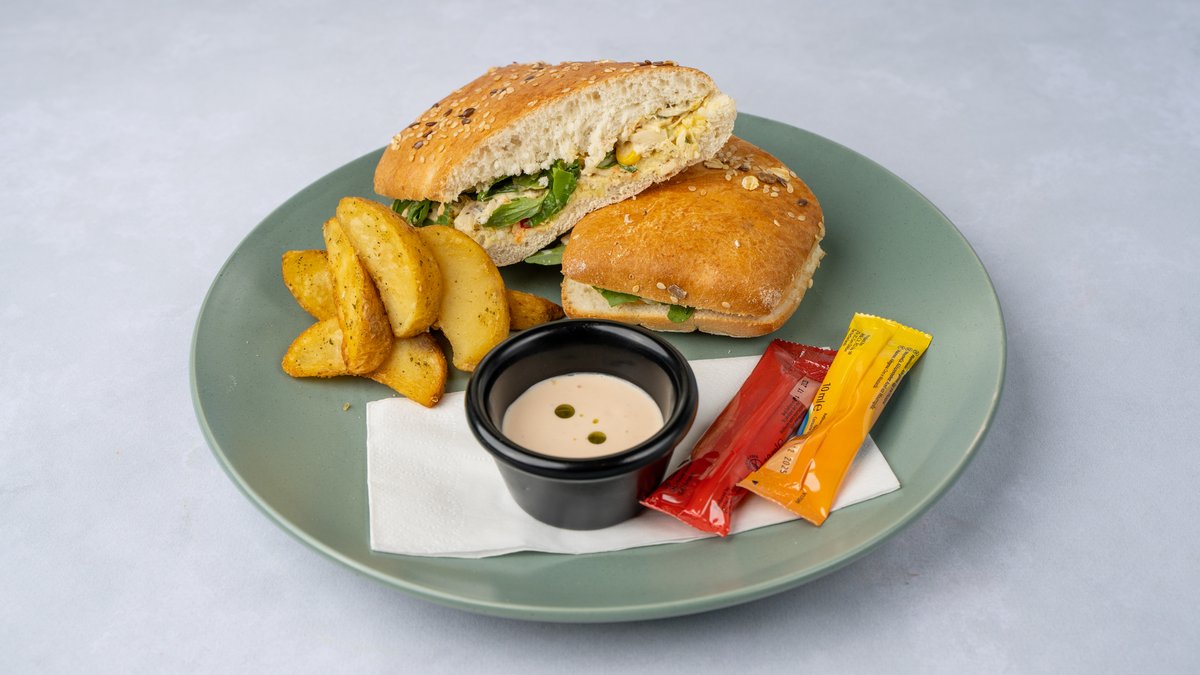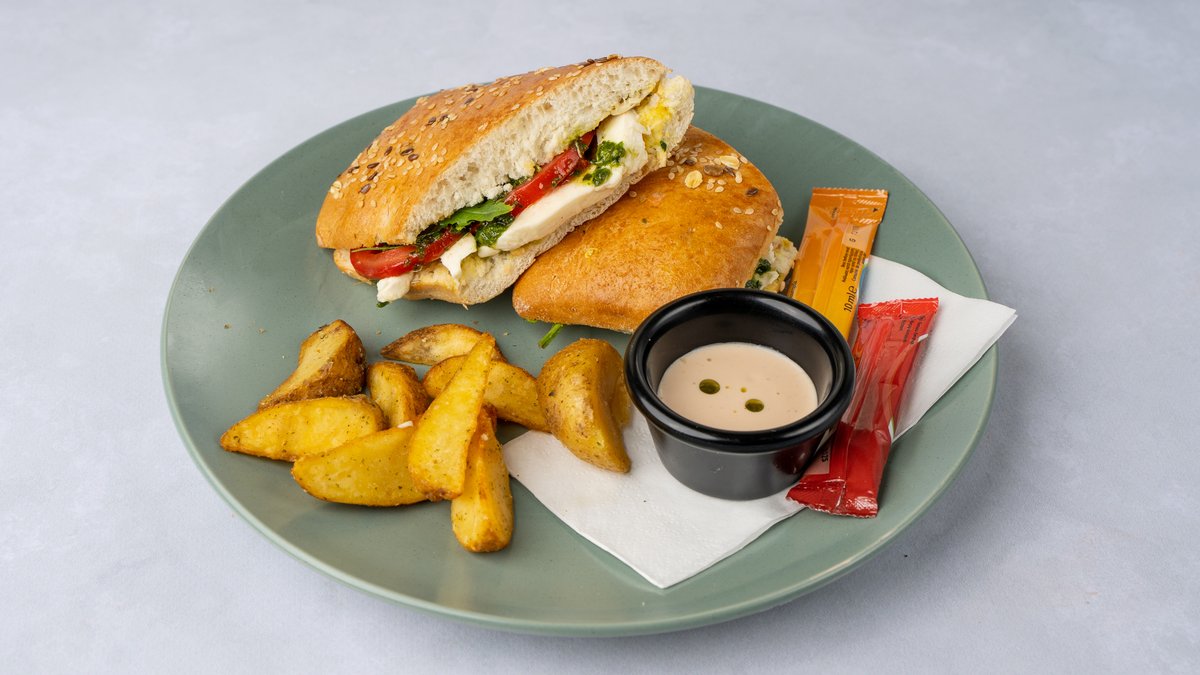 Pleskavicë, vezë, salcë burgeri, fleger cheesteri, patate, sos