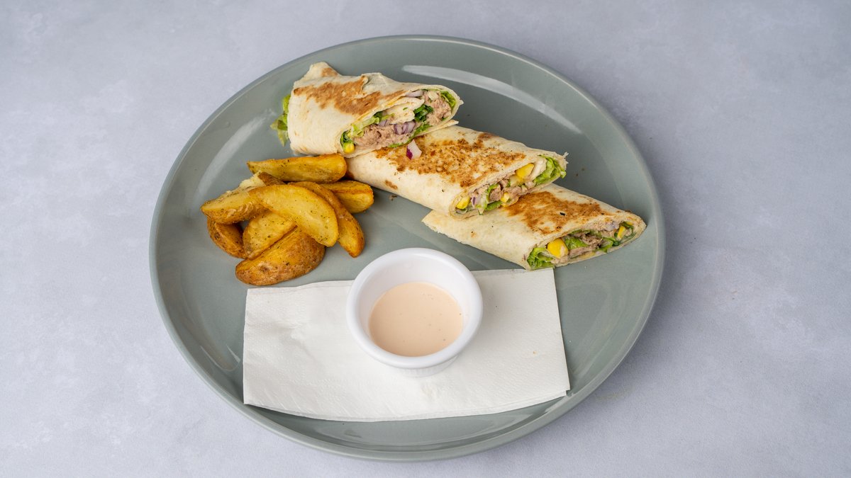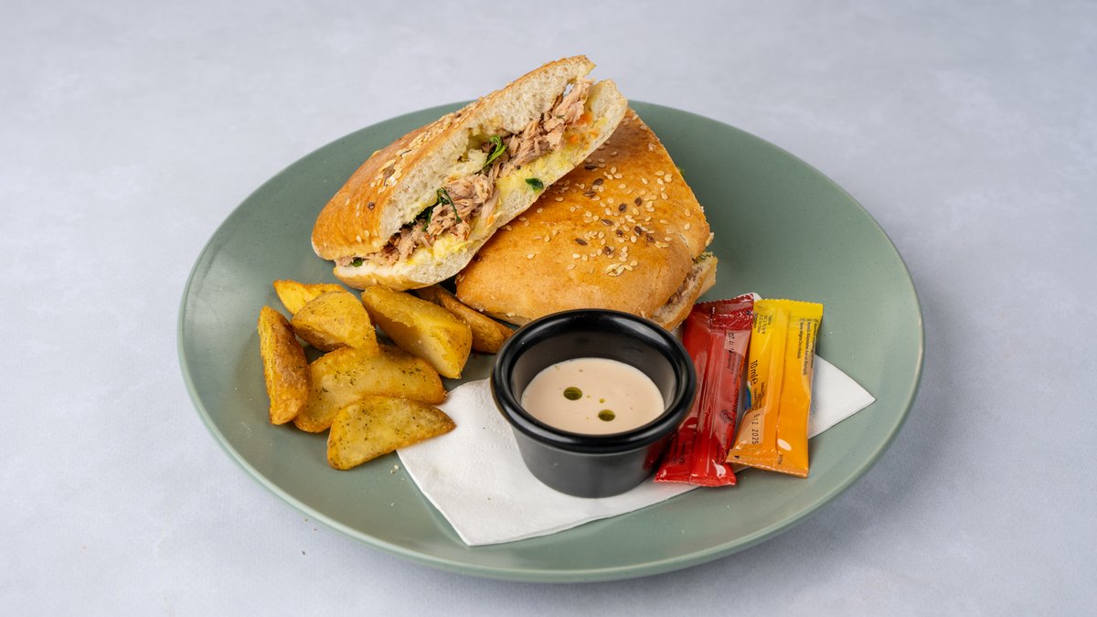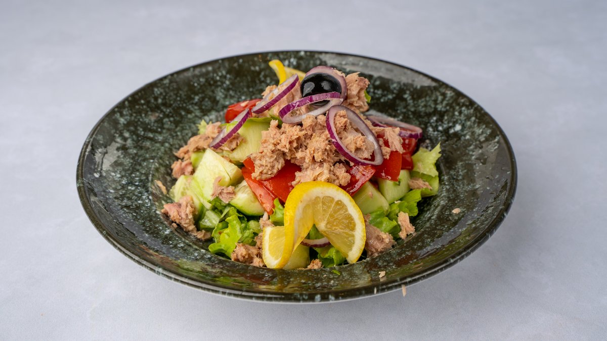 Ton, misër, qepë, sallatë, domate, sos ajke