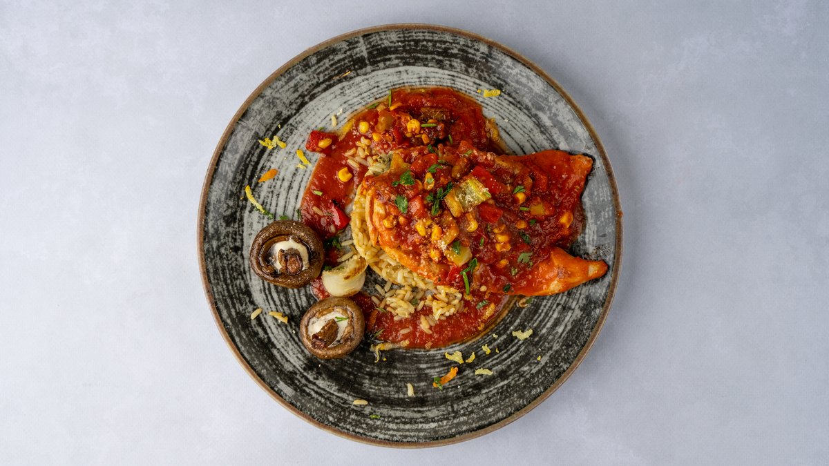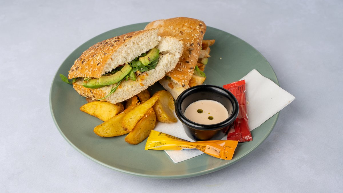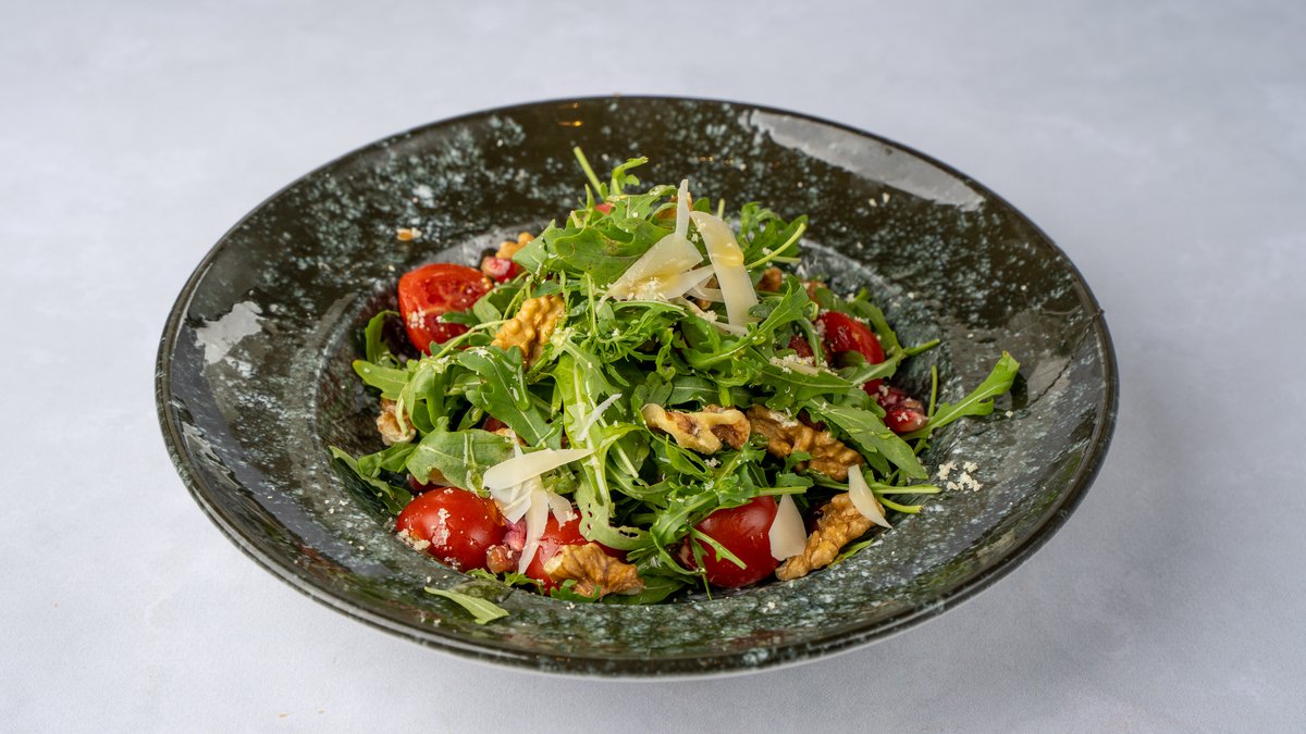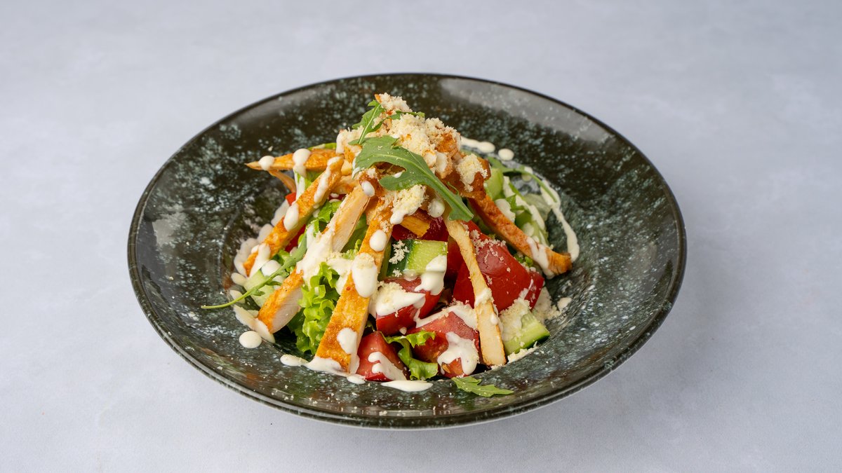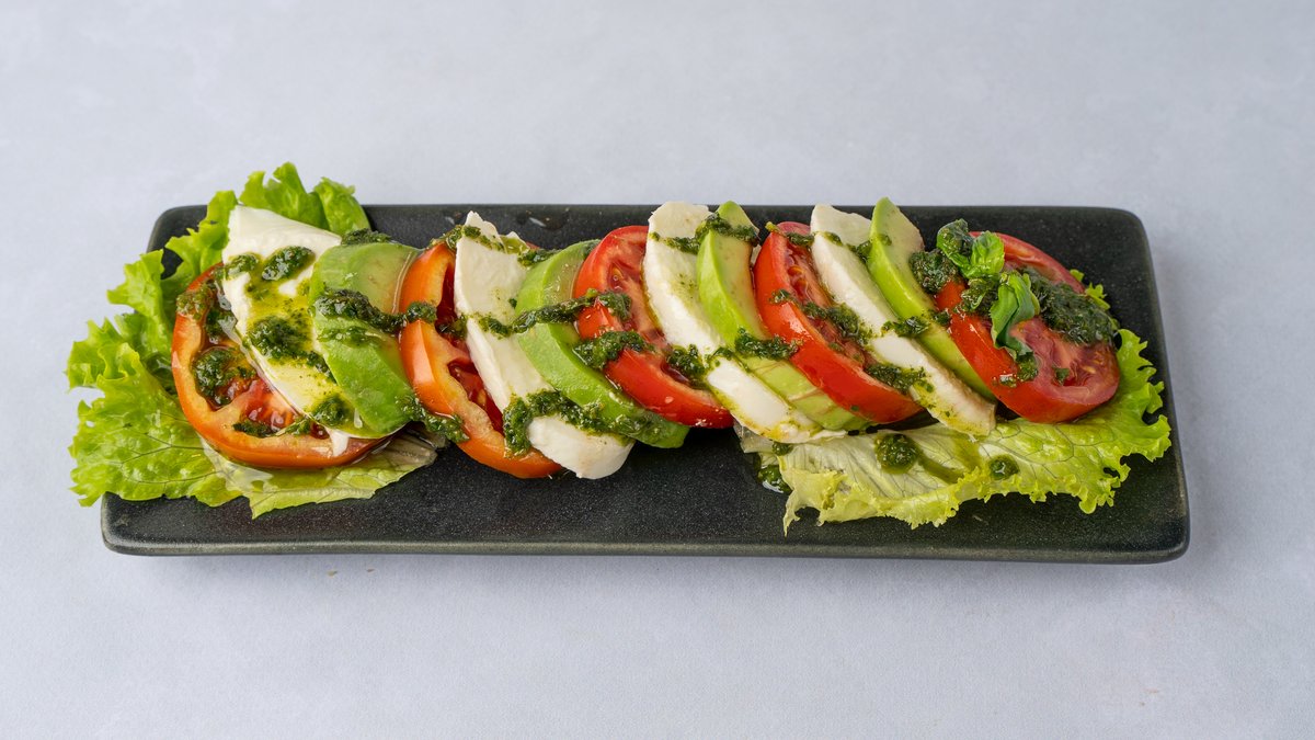 Mish pule, avokado, misër, domate, qepë, rukola, sos ajke