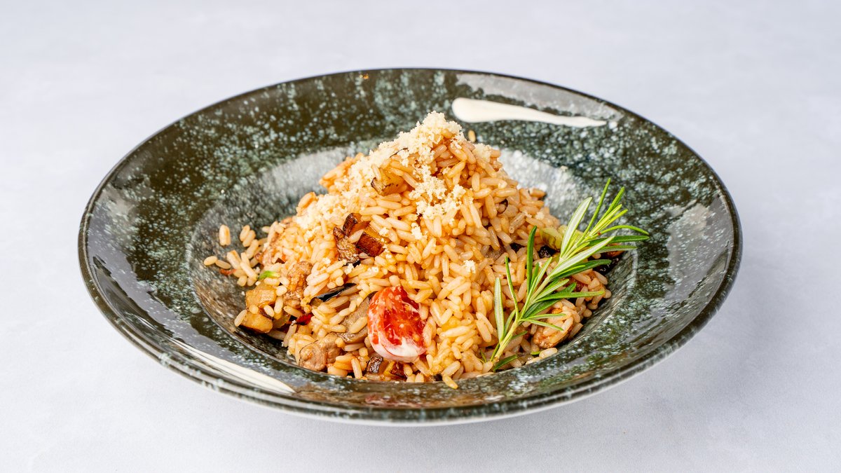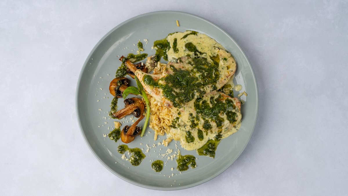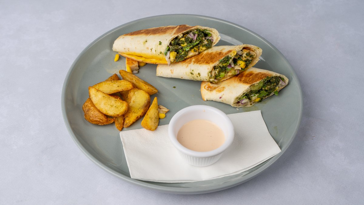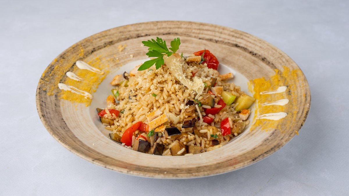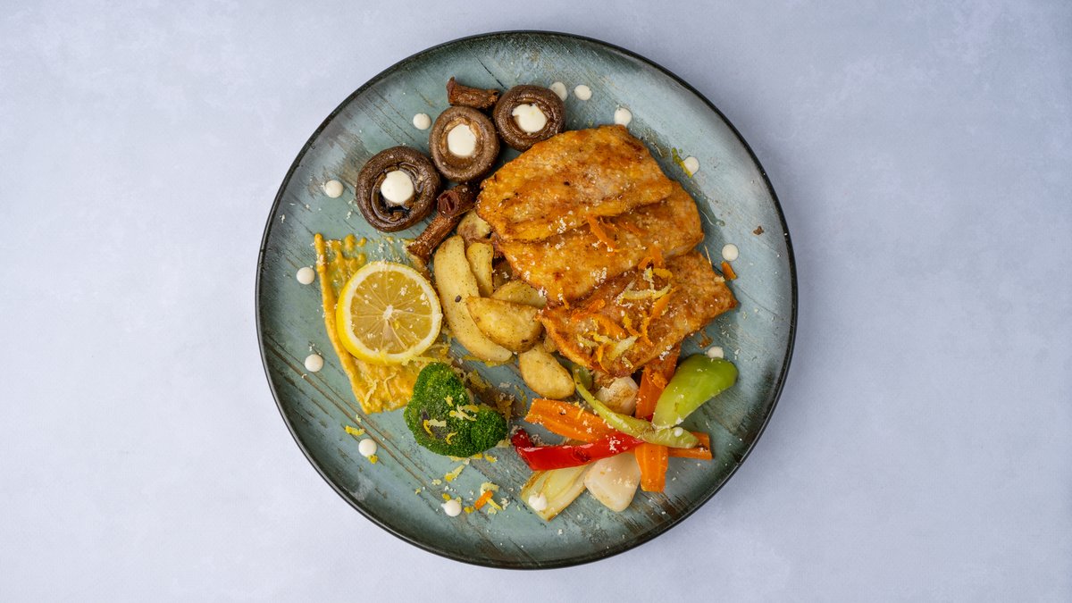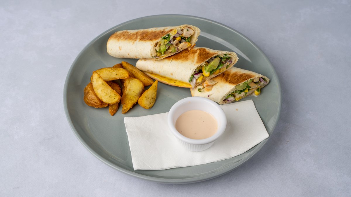 Mish pule, avokado, misër, domate, qepë, rukola, sos ajke