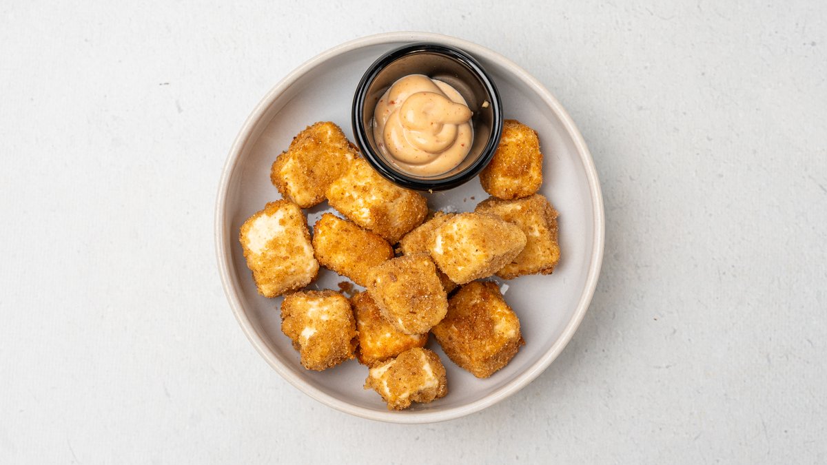 Djathë i skuqur, shërbehet me salcë