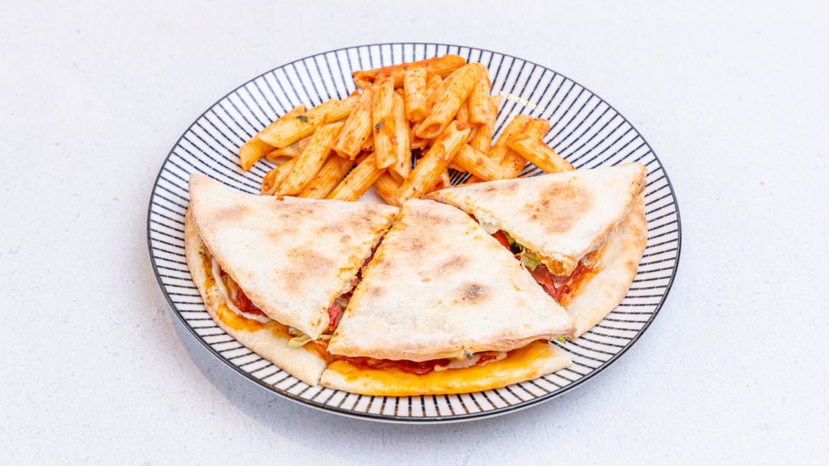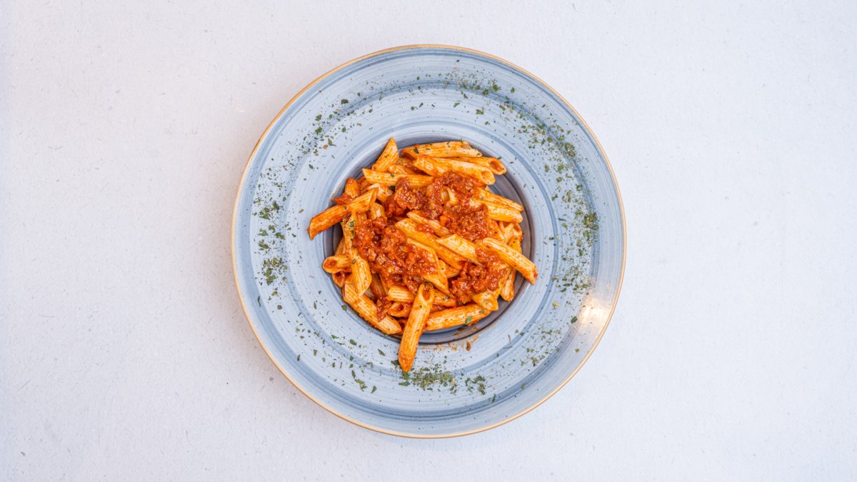 Petë, përshutë suxhuk & kaçkavall, servohet me pasta