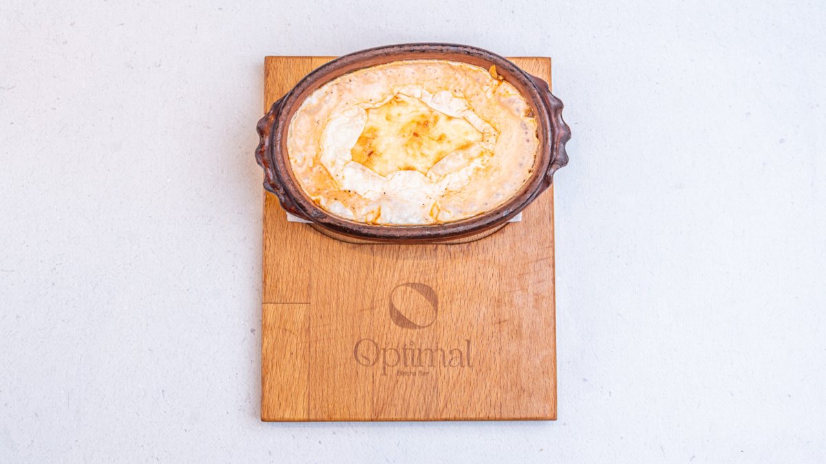 Pleskavicë e mbushur me edam & proshutë, patate, perime të freskëta & sos kërpudhash