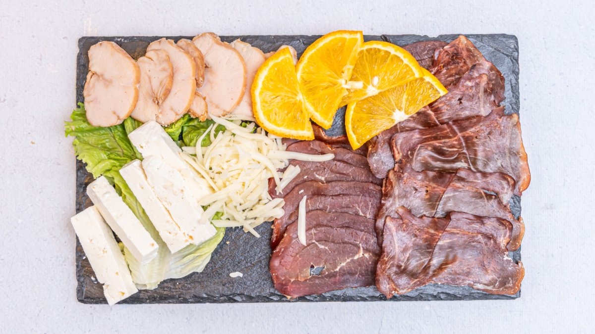 Proshutë e tymosur, proshutë viç, proshutë pule copë, proshutë pule friskë, djathë, kaçkavall, portokall