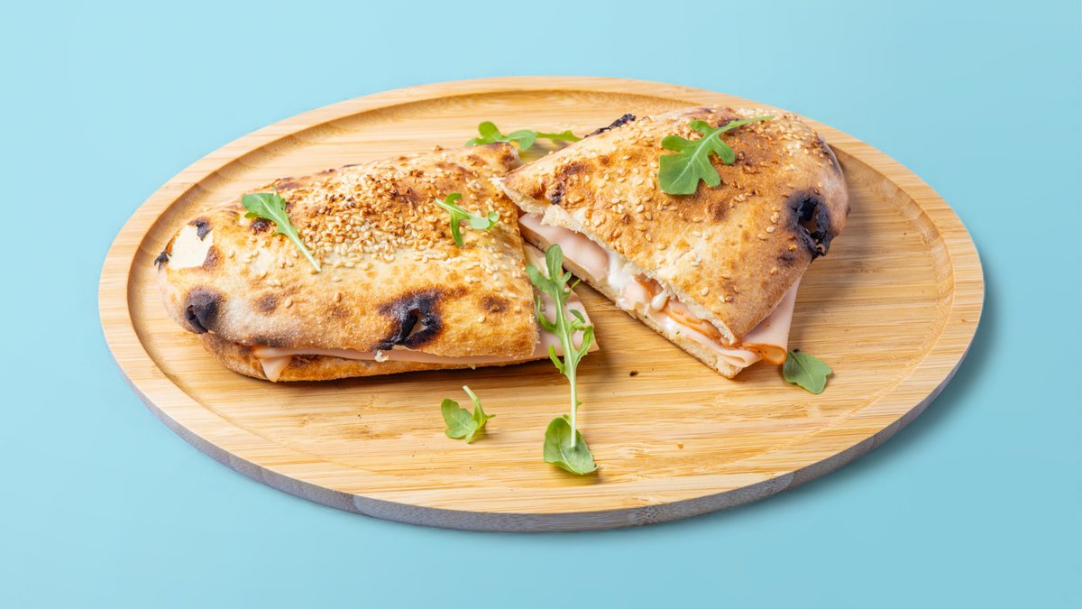 Mozzarella, rosto pule, domate, rukola, garlic sauce
