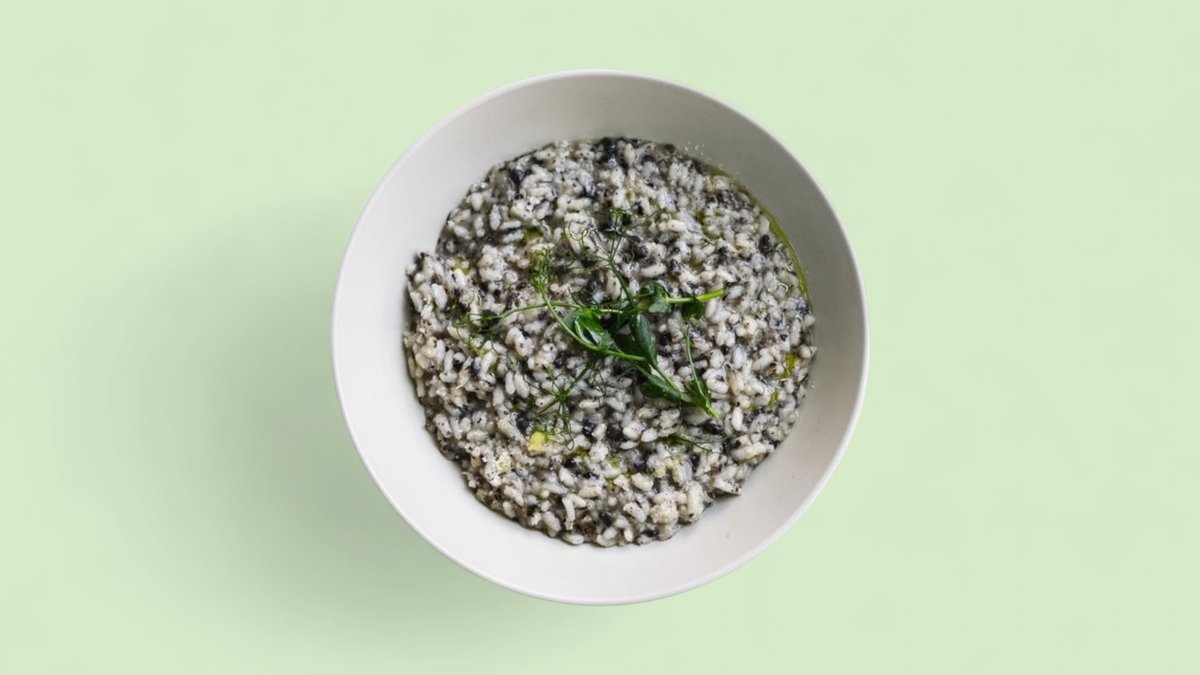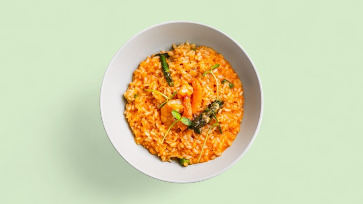 Risotto, karkalec, shparg, parmixhano, vaj hudhre
