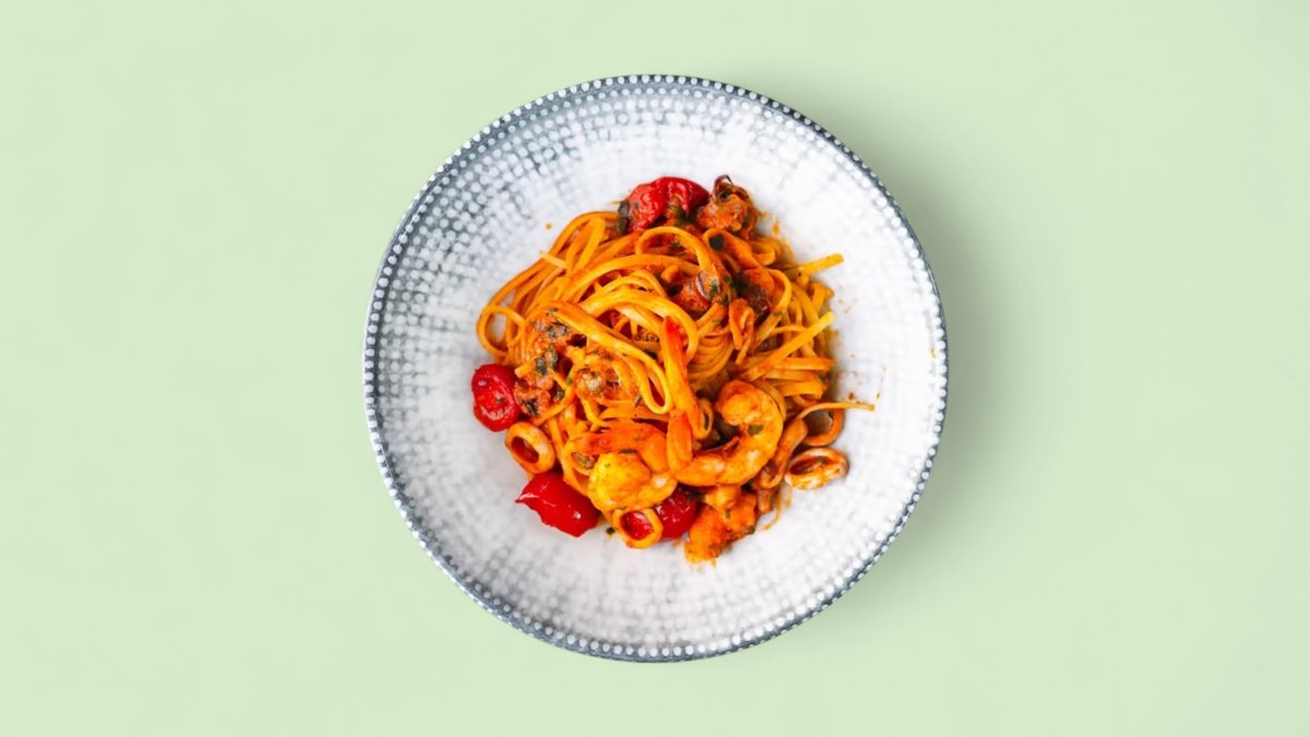 Karkaleca, salcë domatesh, hudhër, djathë dhie, kallamari, majdanoz
