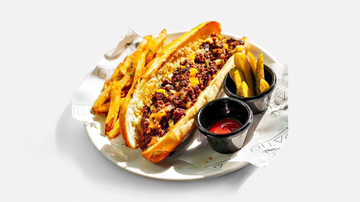 Chiabatta, ribeye meat, chedar cheese, speca, qepë