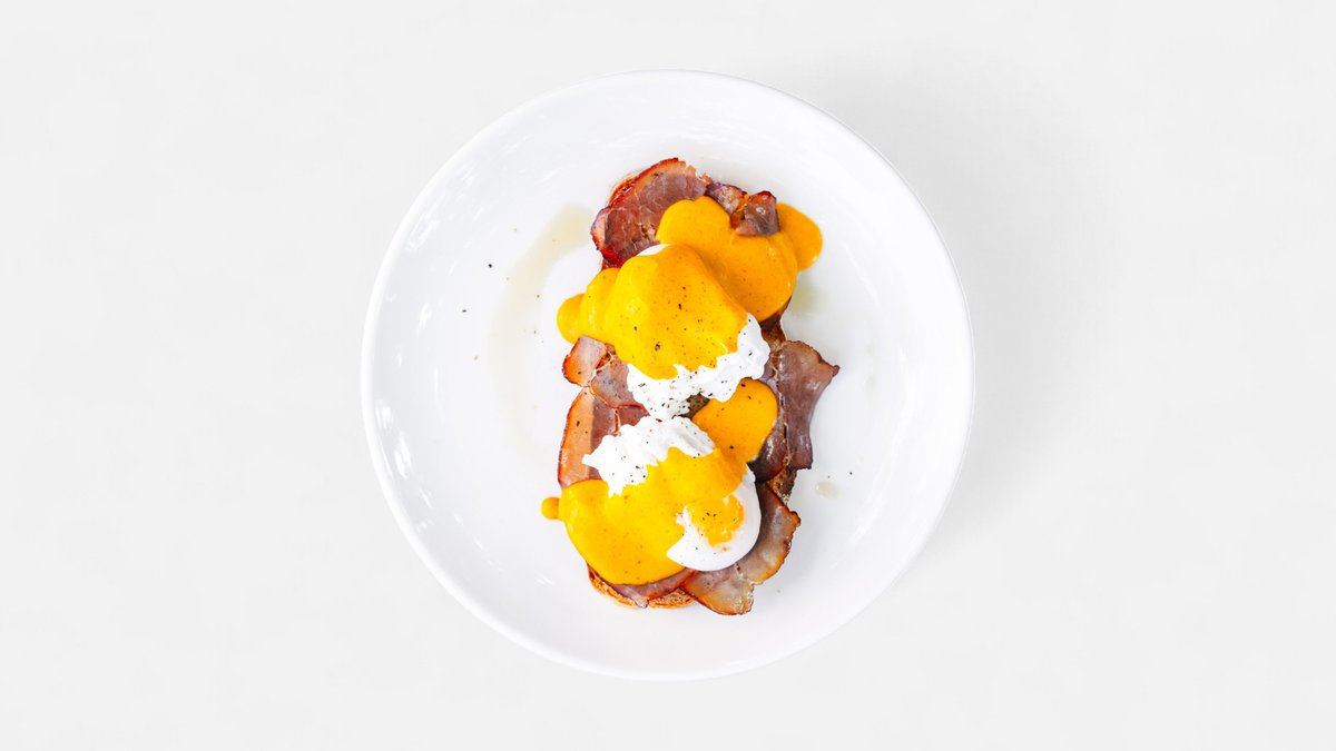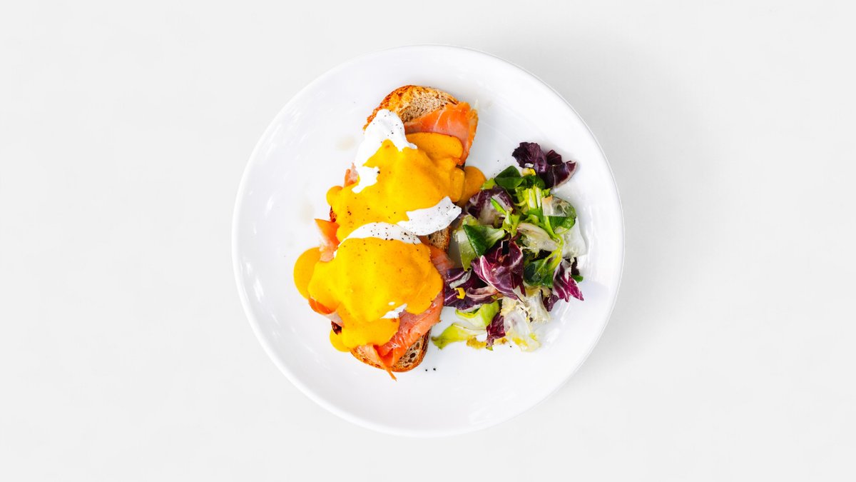 Poached eggs, smoked salmon, seasonal salad, hollandaise sauce