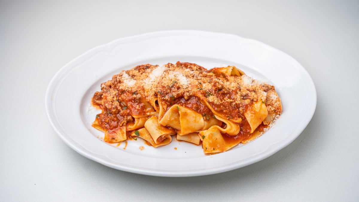 Lasagna me ragu bolognese, salcë beshamel, parmesan