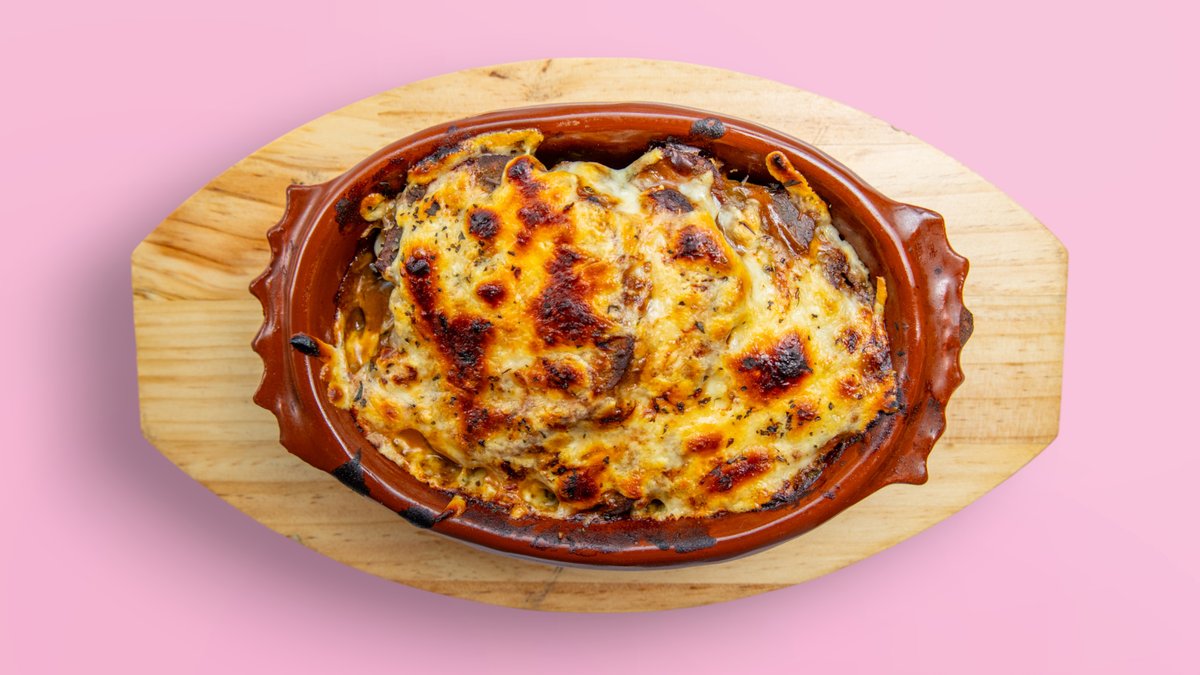 Pleskavicë, proshutë, vezë, cheddar, domate, tranguj, sallatë, sos, pomfrit