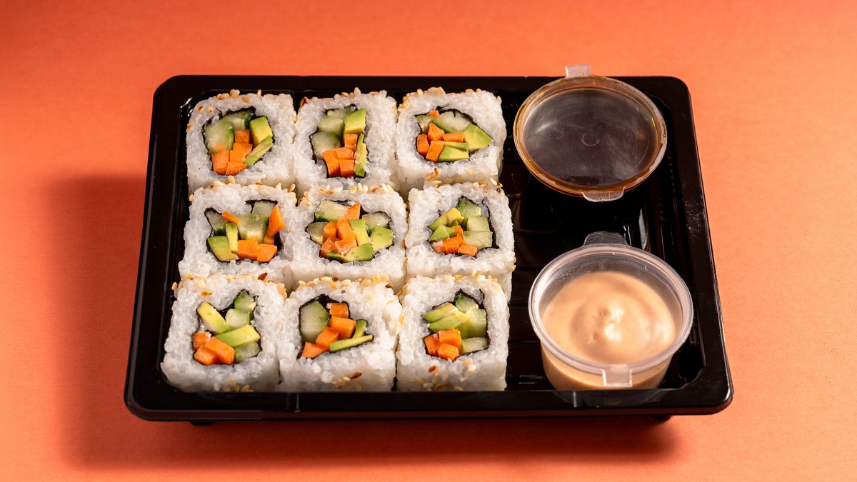 Majonezë, avokado, tranguj, karotë, salcë pikante dhe soje