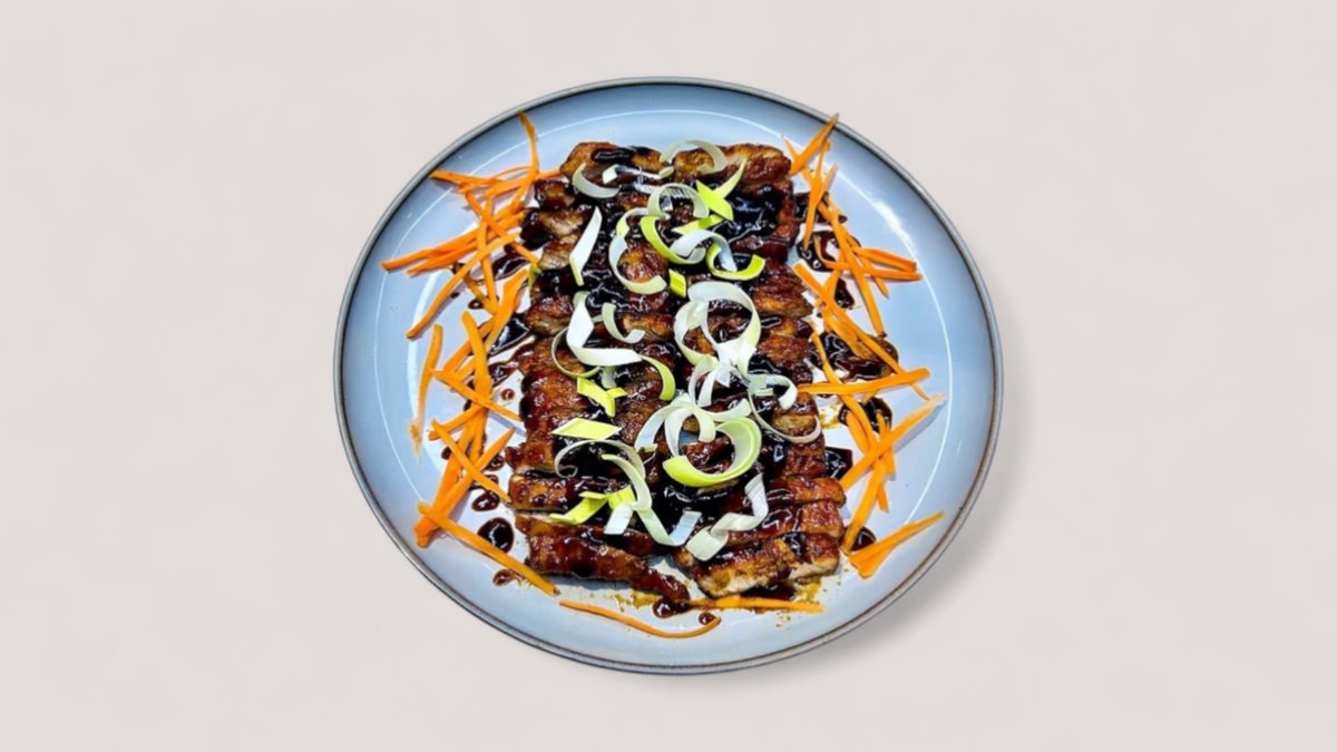 Tender slices of pork belly marinated and stir-fried in savory gochujang chili paste with scallions, onions, garlic, ginger, finished with glossy and caramelized sauce and subtle smoky note. Served with rice.