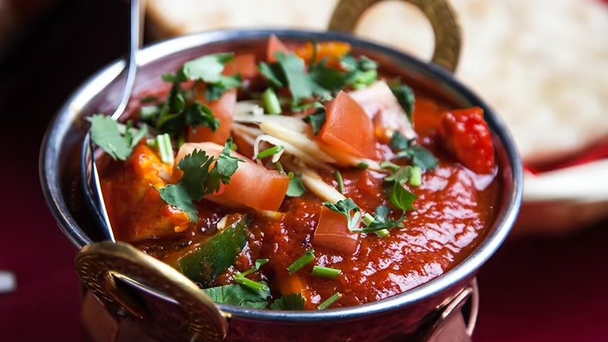 Yrtti-jogurttimarinoituja ja tandoori-uunissa grillattuja lampaan sisäfilee paloja, kanan rintafilee paloja, jättikatkarapuja, lampaan jauhelihaa sekä paprikaa ja sipulia jogurtti- ja currykastikkeessa