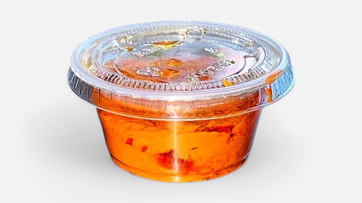 This hot sauce is made from red chili ,peppers, vinegar, and salt. It has a sharp spicy taste.