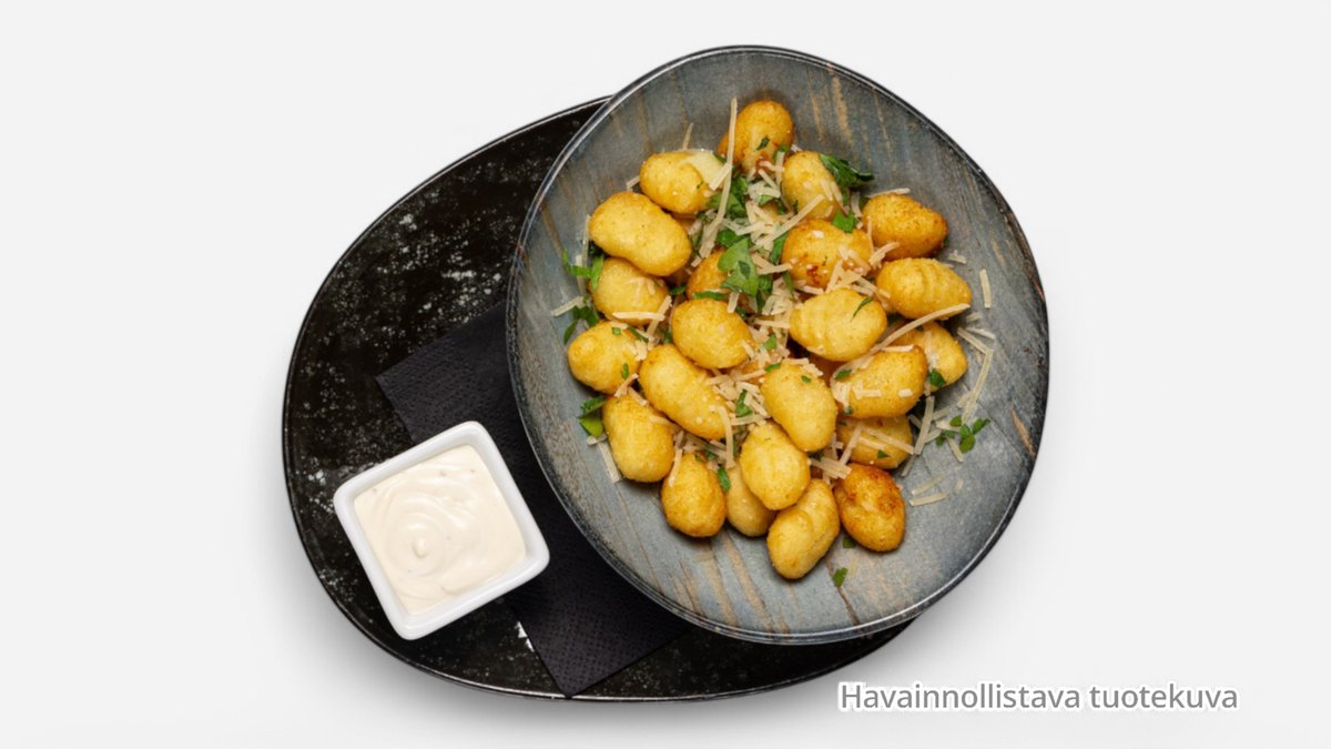 Perunablini, hapankermaa, frittimuikkuja ja hölskykurkkuja