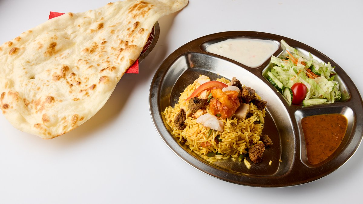 King-prawneja, tandooriuunissa grillattuja kanan- ja lampaanpaloja sekä basmatiriisiä. Yrttijogurtilla marinoituja ja tandooriuunissa grillattuja kanan- ja lampaanpaloja, king-prawneja sekä paneeria tai tofua, tarjoiltuna miedolla lämmöllä kypsennetyn riisin, mausteiden ja pähkinöiden kera. Annoksen keskellä raikastava raita. Voidaan valmistaa myös ilman paneeria, jolloin tofua käytetään sen sijaan, ja annos sopii laktoosittomana.