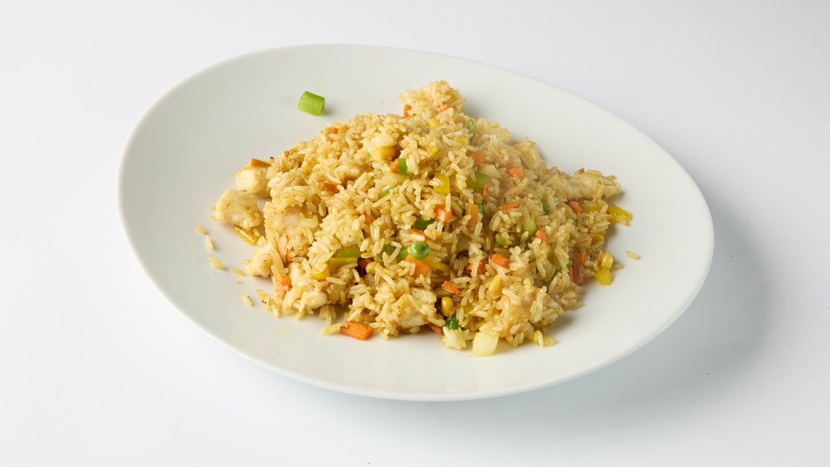 44. Paistettua katkarapua ja riisiä/nuudelia