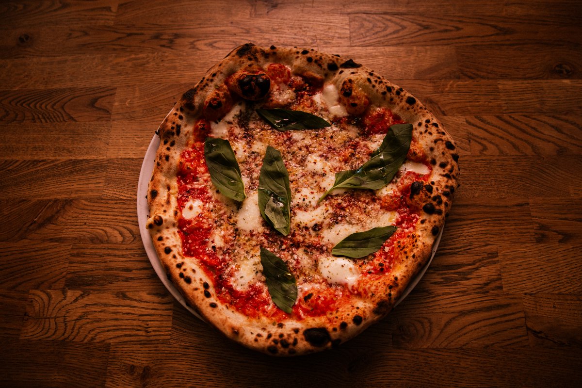 Italian plum tomato sauce, pecorino, mozzarella, basil