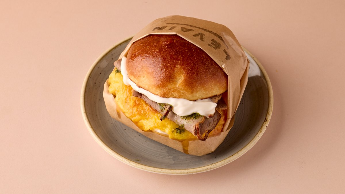 Kananmunaa, cheddaria, srirachamajoneesia & valintasi mukaan pinaattia tai pekonia (L) Fried egg, cheddar, sriracha mayonnaise & your choice spinach or bacon (L)