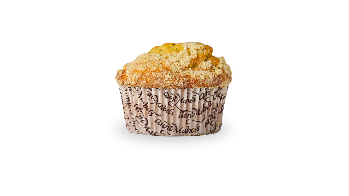Ihanan raikas sitruunainen muffinssi unikonsiemenillä, joka kätkee sisäänsä tuorejuustokreemin.