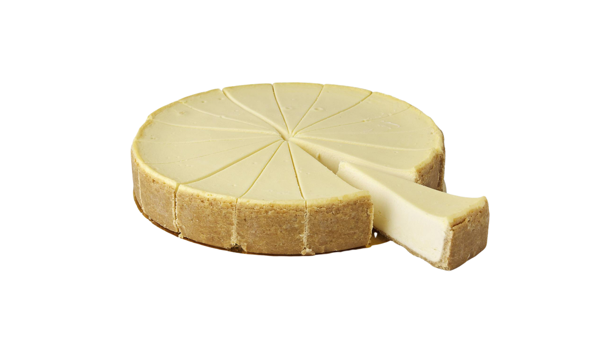 Rapean grahamkeksipohjan päällä kermainen ja täyteläinen vaniljajuustokakku. Kakku on leikattu valmiiksi 16 palaan.