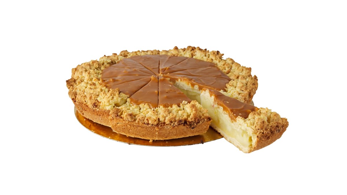 Murotaikinapohjan päälle omenoita isoina paloina, sopivasti sokeria ja ihanaa kinuskia. Herkutteluhetki on taattu.