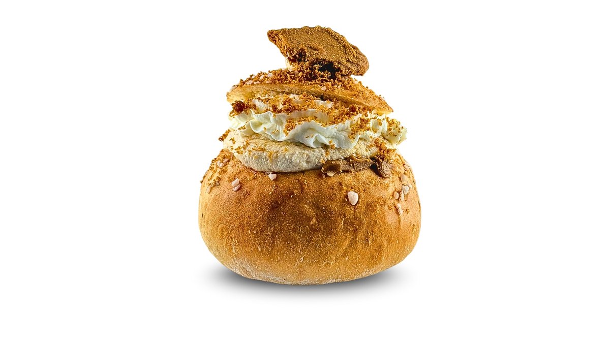 Ihanan pehmeä pulla herkullisella Biscoff-kreemillä sekä kermavaahdolla. Pulla viimeistellään Biscoff-keksillä.