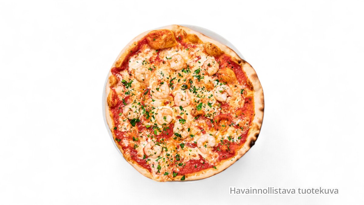 Kinkkua, salamia, herkkusieniä, jalopenoa, tuoretta tomaattia, mozzarellaa, oliiveja, valkosipulia