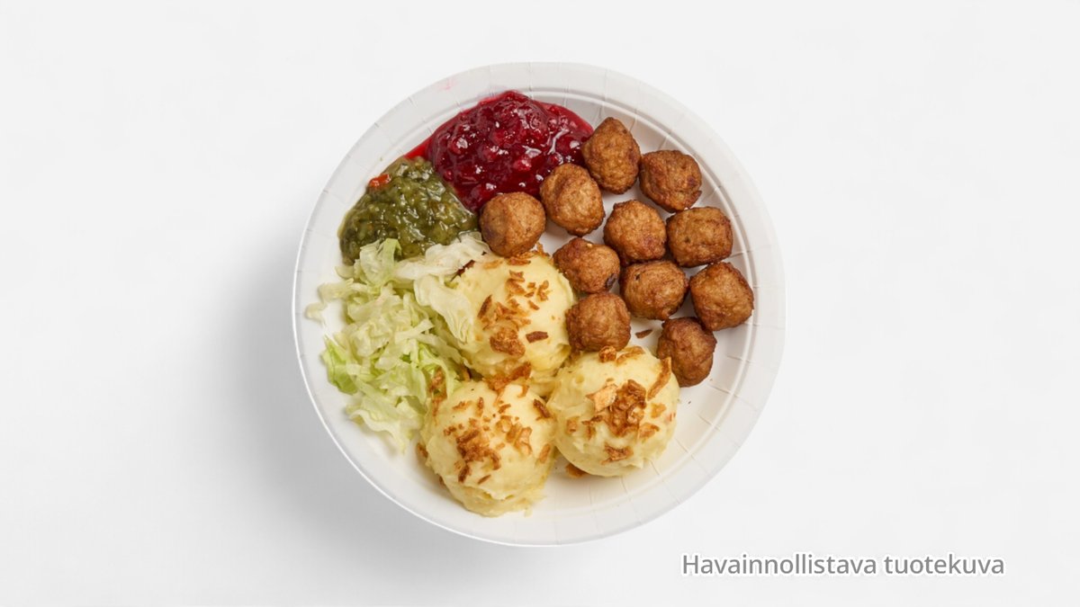 Kebab, salaatti, tomatti, suolakurkku, sipuli, jugurtti, vihreä pepperoni, salaatinkastike ja leipäkuutiot. Kebab annoksiin kuuluu; kastike vaihtoehto mieto-, tulinen-, ja valkosipuli. Annos sisältää 0,33l juoman.