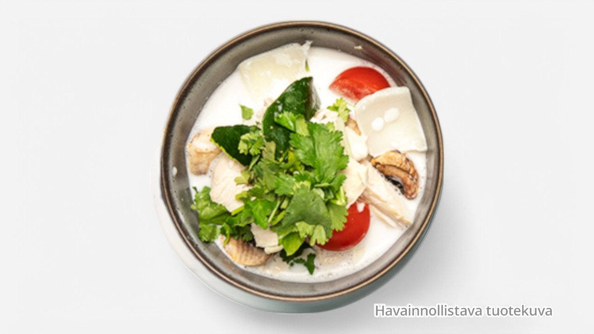 Thaimaalainen kookosmaitokeitto valitsemallasi täytteellä