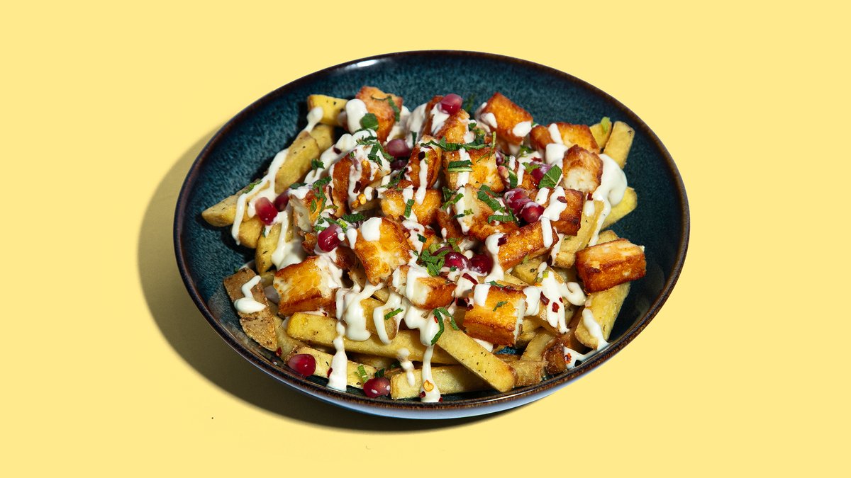 Crispy fries loaded with Fafa's vegan aioli, halloumi bites, honey and fresh mint.