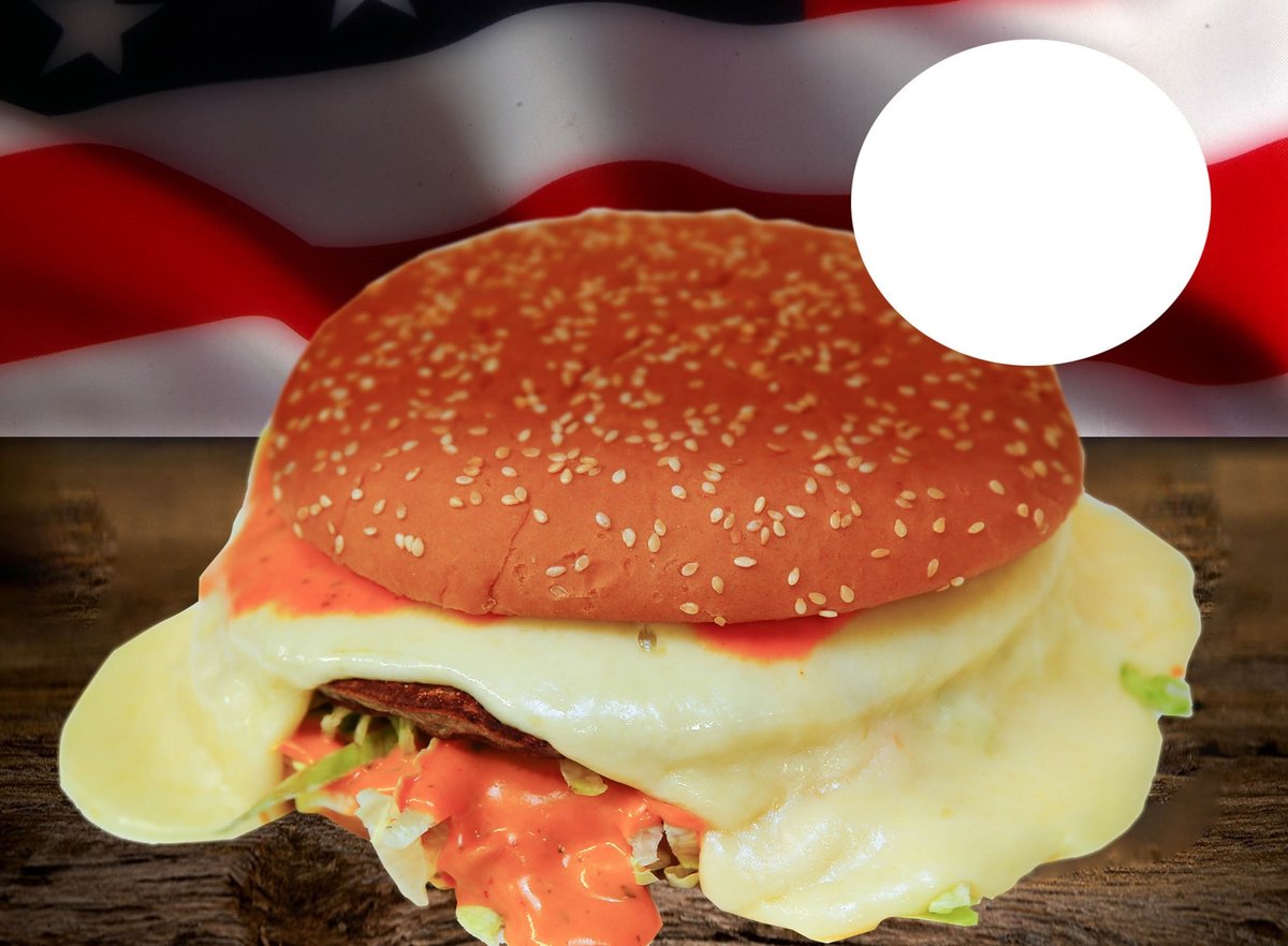 180g täyslihapihvi, juusto, sinappi, ketsuppi, cheddarjuustoa sipuli, kurkkusalaatti, salaatti, amerikankastike