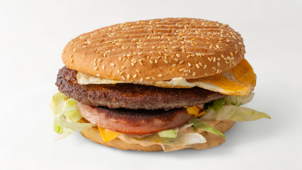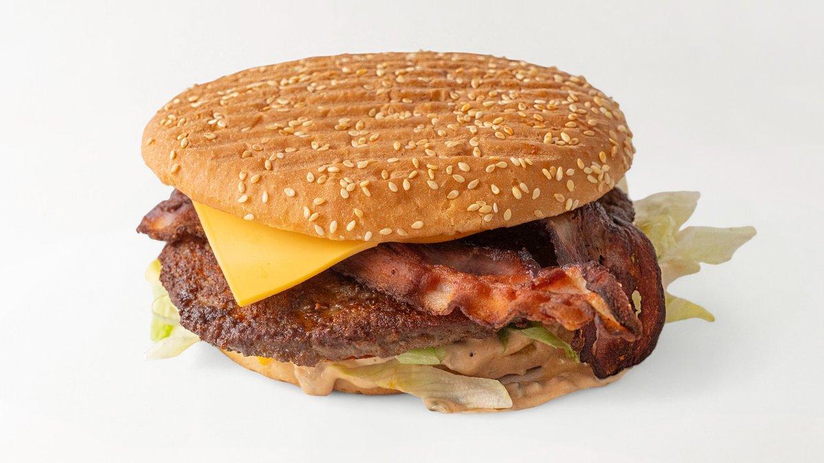2x130g jauhelihapihvi, pekoni, juusto, tomaatti, sipuli, salaatti, savuchilimajoneesi