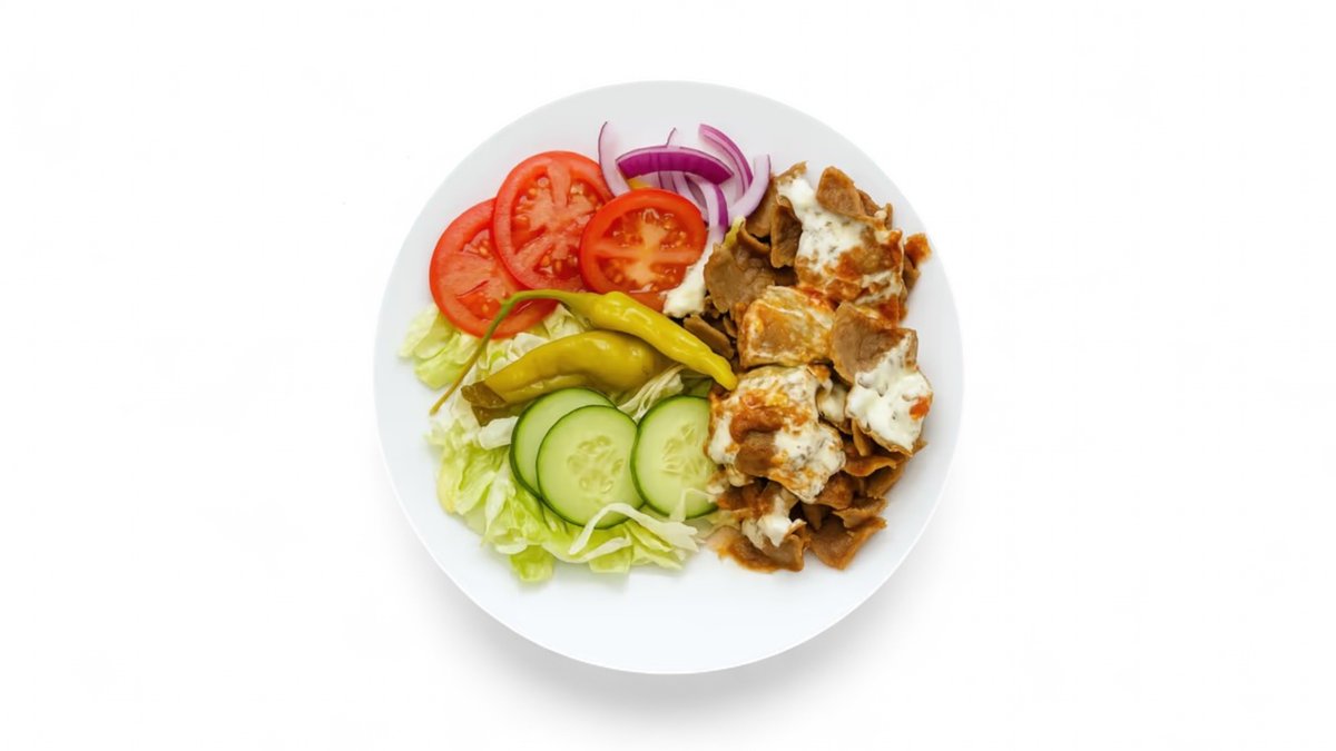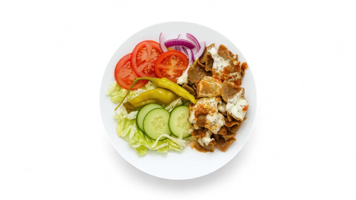 Salaatti, sweechilikastike, tomaatti, sipuli, kurkkusiivut, pepperoni, Kebabkastikkeet ( valkosipuli ja miedosti chilillä maustettu tomaattipohjainen kastike )