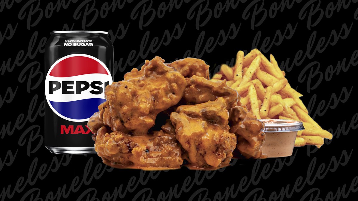 Ateria sisältää normaalin original boneless fried chicken-annoksen, dipin, ranskalaiset ja virvoitusjuoman. Original boneless fried chicken-annos sisältää 250g rapeaksi friteerattua luutonta kanaa (raakapaino ennen paistoa) ja porkkana-ja kurkkutikkuja. Original boneless fried chicken sisältää kokonaisia luuttomia broilerin koipireisipaloja, jotka piimämarinoidaan ja leivitetään jauhoseoksessa. Annos sisältää gluteenia ja sitä ei pystytä valmistamaan gluteenittomana.