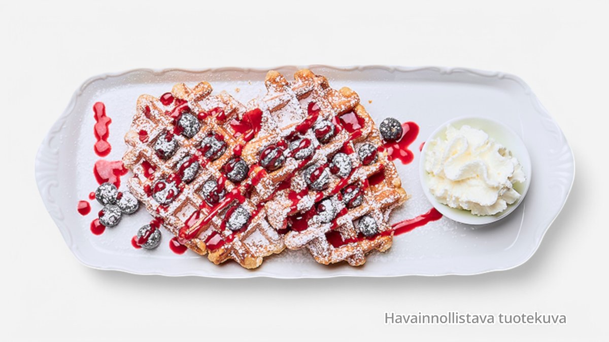 Lasten vohvelit ovat puolet normivohveleista. Tuotekuvissa on normaali annos (ei lasten).