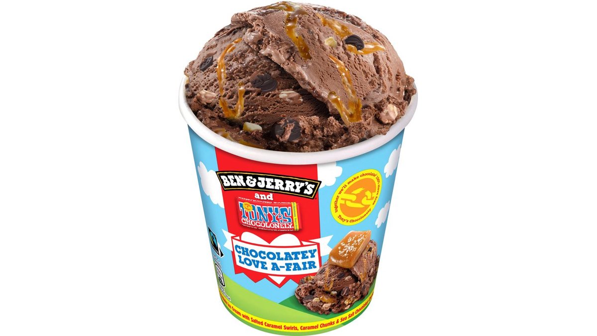 Ben & Jerry's Chocolatey Love A-Fair -jäätelö sisältää suklaajäätelöä, joka on täynnä suolakinuskipyörteitä, kinuskipaloja sekä merisuolalla maustettuja suklaisia paloja. Tämä erikoiserä on valmistettu yhteistyössä Tony's Chocolonelyn kanssa, ja yhdessä pyrimme tekemään suklaateollisuudesta täysin orjatyöstä ja laittomasta lapsityövoiman käytöstä vapaata. Maailman muuttaminen ei ole koskaan maistunut näin hyvältä. Ben & Jerry's on sitoutunut tekemään parhaan mahdollisen jäätelön parhaalla mahdollisella tavalla. Siksi tämä pakkaus on täynnä herkullista suklaajäätelöä, suussa sulavia pyörteitä, paljon suklaan ja rapean kinuskin palasia – ja siksi lähdimme Tony's Chocolonelyn mukaan tekemään suklaasta täysin orjatyöstä vapaata. Olemme sitoutuneet siirtymään Tony's Open Chain -aloitteeseen, joka on jäljitettävissä oleva ja eettinen lähestymistapa kaakaon hankintaan. Tavoitteenamme on lopettaa moderni orjuus ja lapsityövoiman käyttö suklaateollisuudessa. Kaikkien herkullisten jäätelöidemme tavoin Chocolatey Love A-Fair -jäätelö on Reilun kaupan sertifioitua, mikä tarkoittaa, että viljelijät saavat jo nyt lisämaksua kaakaon markkinahinnasta. Suhtaudumme suklaaseen vakavasti. Odotamme innolla matkaamme Tony's Chocolonelyn kanssa kohti entistä eettisempää kaakaontuotannon tulevaisuutta! Kaikki alkoi siitä, kun kaksi kaveria alkoi myydä Vermontin Burlingtonissa sijaitsevasta kunnostetusta huoltoasemasta jäätelöä vuonna 1978. Heidän perustamastaan jäätelöyrityksestä tuli yhtä legendaarinen kuin jäätelöstä itsestään. Se oli seikkailun alku, joka on yhtä myyttinen kuin jäätelömme on hyvää. Jäätelömme tunnetaan nyt syrjäisilläkin seuduilla ja vaikeasti lausuttavilla nimillä ympäri maailmaa. Ben & Jerry's -jäätelön valmistukseen käytetään Reilun kaupan sertifioitua sokeria, kaakaota ja vaniljaa. Lisäksi jäätelö pakataan kestävään ja vastuullisesti tuotettuun pakkaukseen. Jäätelöpakkaus tulee säilyttää -18 °C:ssa tai kylmemmässä. Ei liene mitään niin ikonista jäätelöpurkkia kuin Ben & Jerry's -jäätelöllä. Asia ei kuitenkaan aina ole ollut niin! Varhaisina vuosina Ben ja Jerry eivät – usko tai älä – myyneet jäätelöä purkeissa, vaan irtopalloina Burlingtonissa, Vermontissa. Oli alun perin Benin idea kokeilla pakata herkullista jäätelöä purkkeihin kotiinvietäväksi. Loppu, kuten tapaamme sanoa, on jäätelöhistoriaa. Mutta nyt riittää puheet. Nautitaan jäätelöstä. Tutustu laajaan valikoimaamme osoitteessa benjerry.fi