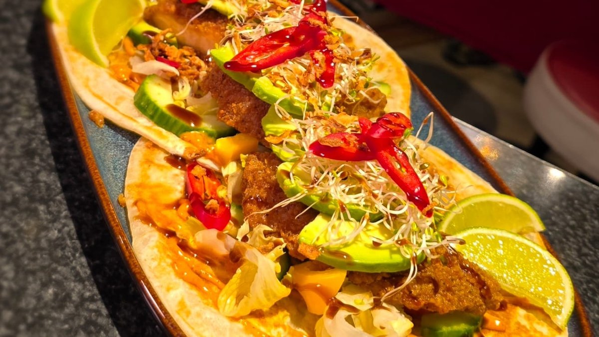 2 tacoa omavalintaisella proteinilla. Sis. Erilaisia kasviksia, hoisin kastiketta, chilimajo