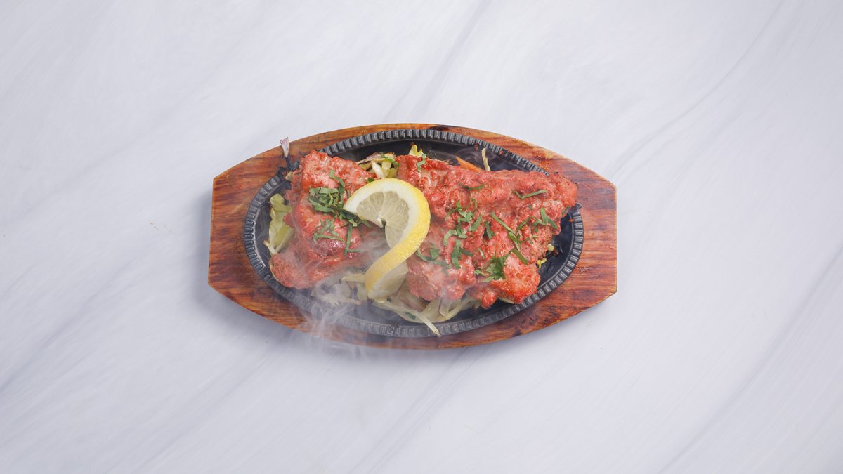 Kycklingfilé marinerad med speciella bengaliska kryddor och yoghurt. Grillad till perfektion och serveras med röd currysås. Med vitlök, ingefära, indiska kryddor, honung och yoghurt. Serveras med en krämig sås.