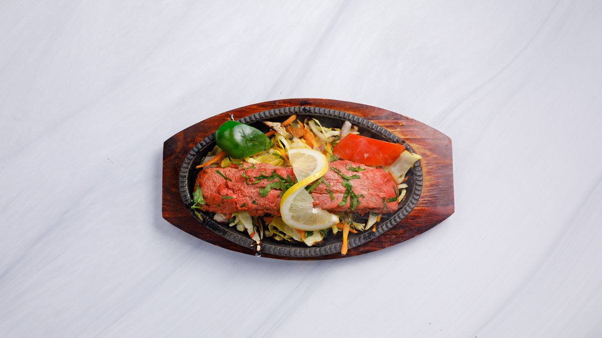 Grillat lamm marinerat i ingefära, vitlök, röd chili, mandel, rosenblad, youghurt och garam masala. Serveras med krämig lök-och tomatsås och chutney.