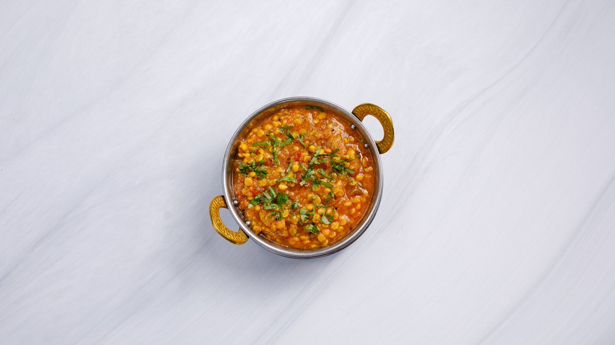 Kikärtor tillagade med vitlök, lök, ingefära, grön chili, koriander och kryddor.