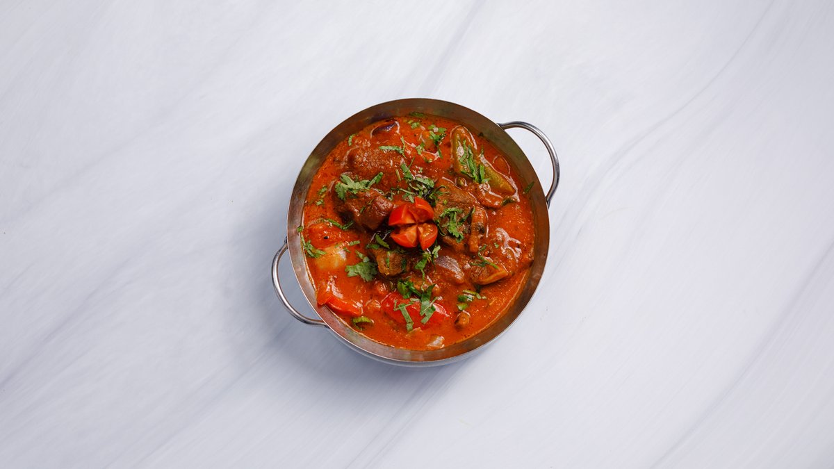 Het lammrätt från Goa med smak av röd chili, kanel, nejlikor, curryblad och rödvin. Stark.