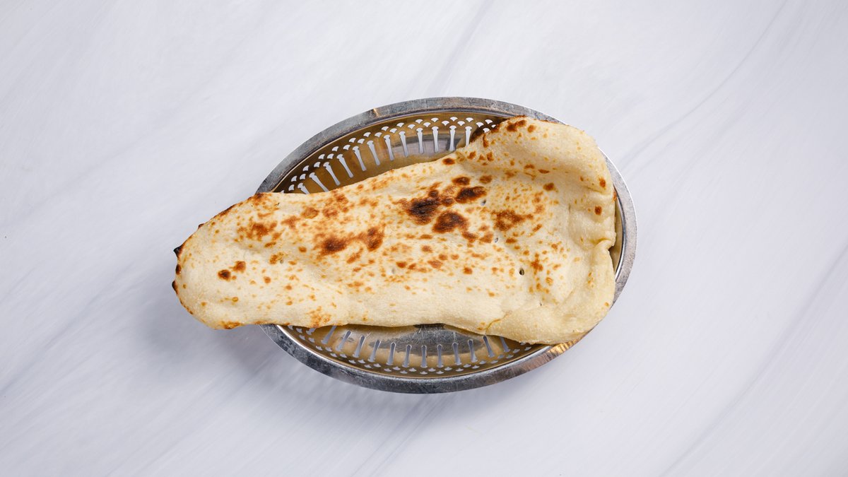 Naanbröd toppad med vitlök, koriander och chat masala.